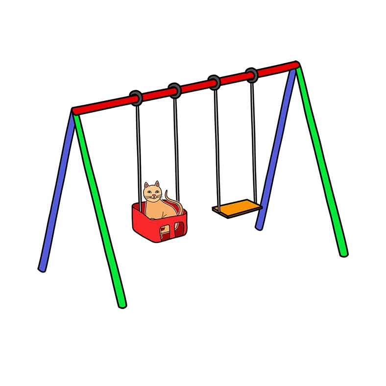 The cat is in the swing.
