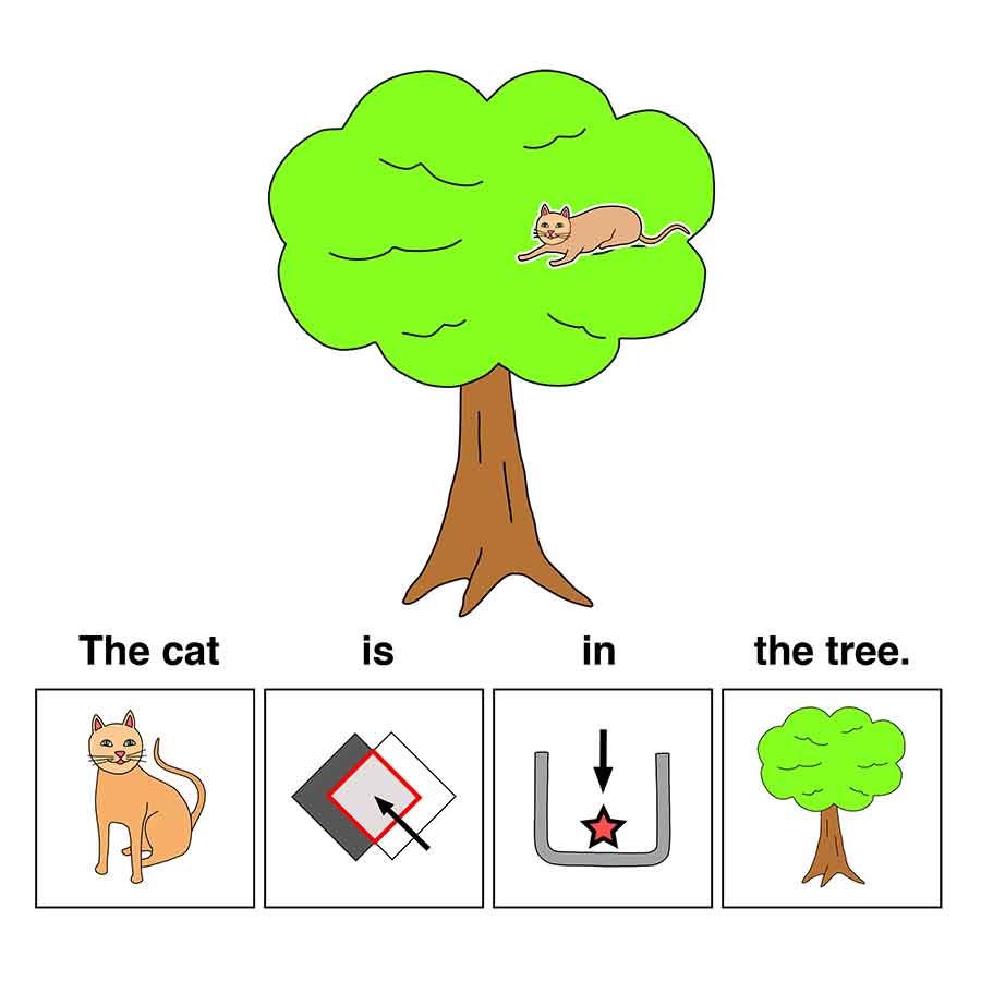 The cat is in the tree.