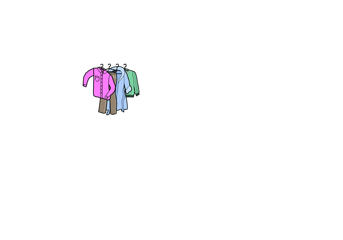Tina, where do the shirt, pants, robe, and sweater go?